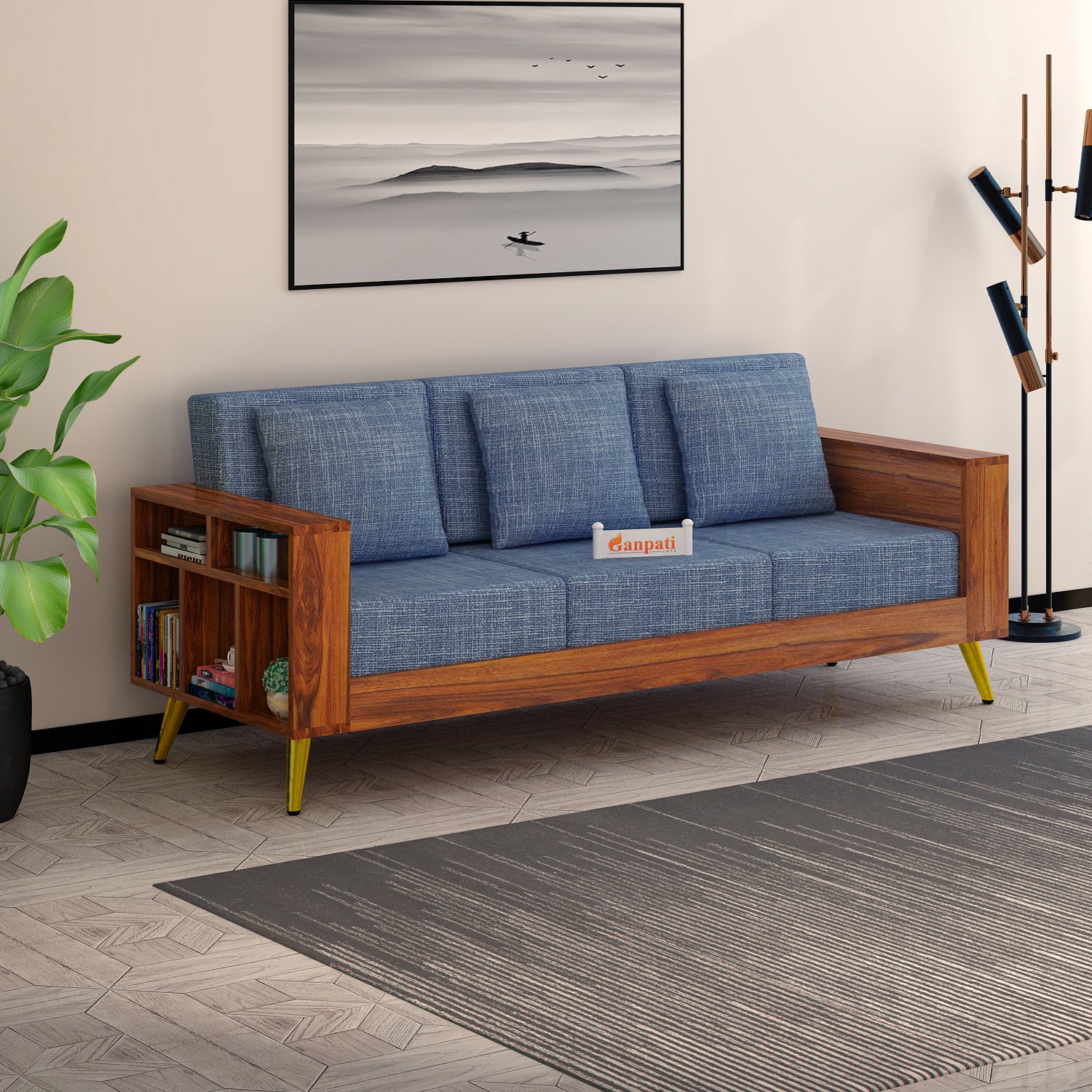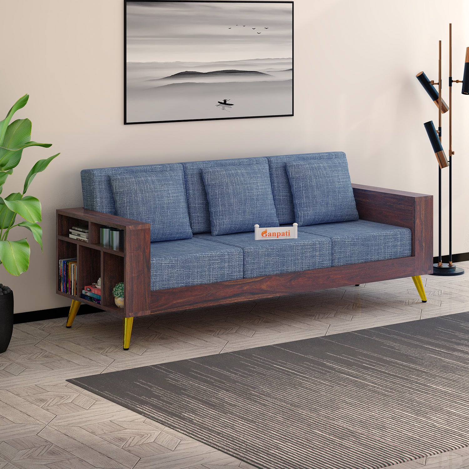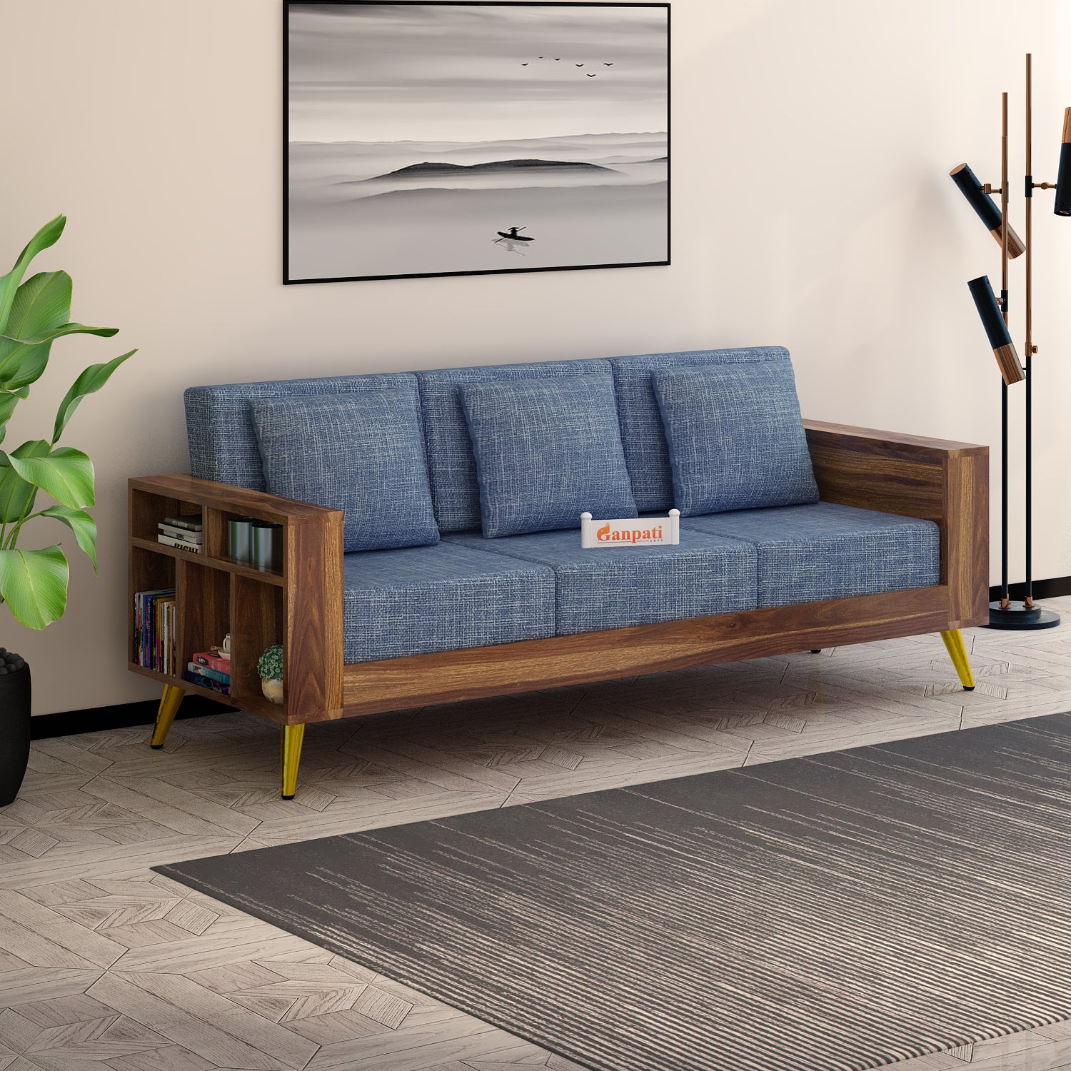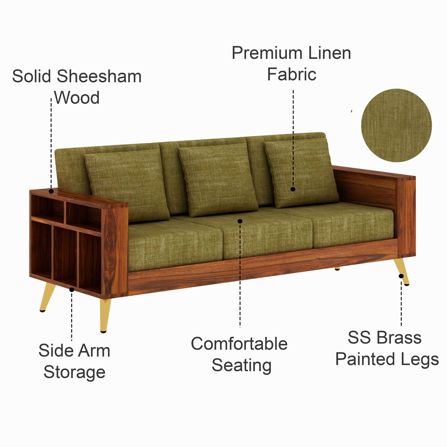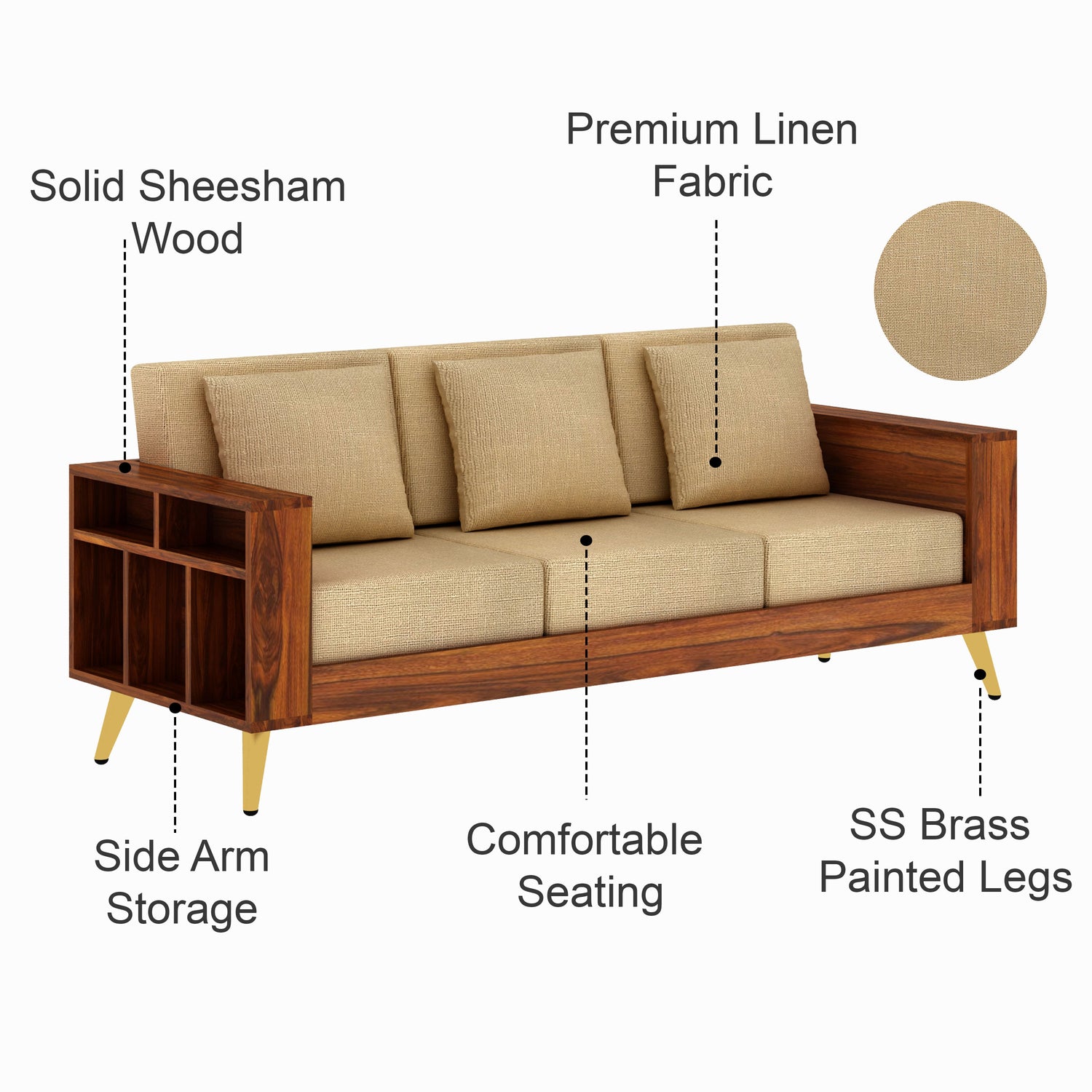 Bolt Solid Sheesham Wood 3 Seater Sofa With Side Storage - 3 Year Warranty (LUXE EDITION)
