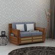 Syrus Solid Sheesham Wood 2 Seater Sofa With Side Pocket and Cane Design -3 Years Warranty