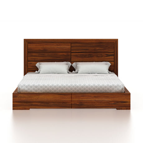 Wave Solid Sheesham Wood Bed with Box Storage - 3 Years Warranty